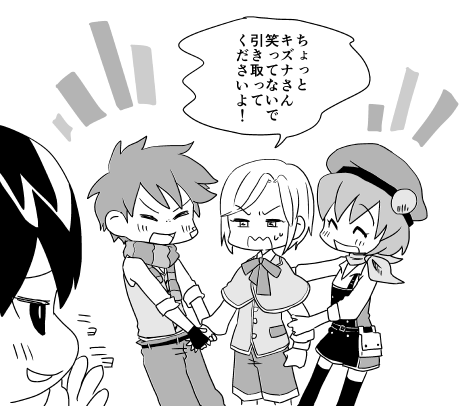 他はうちの女主キズナとフリッツ、クラウスとメノウが出て来ました。細かいストーリーは忘れちゃったんだけど、町から出てゆこうとする姉弟を主人公たちが止めるみたいな話だったと思う……。