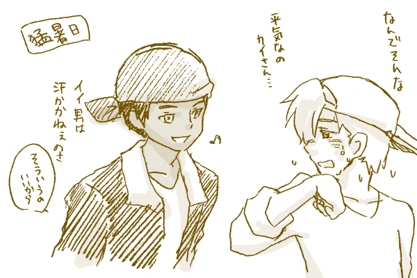 毎日暑いですね!ということで、汗だくピートさんと平気なカイさん。