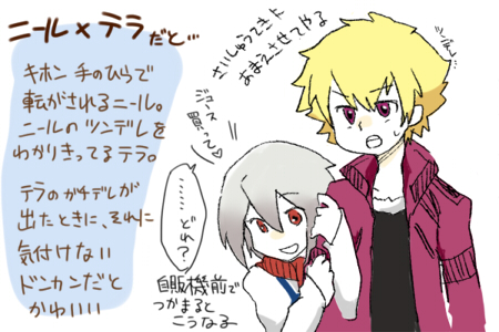 多分二人とも照れ屋。照れたときにツンなのがニール。照れたときに喋りまくって誤魔化しきるのがテラ。