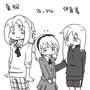 なんの変哲もない制服。ディアさんは何故か男子用ズボンに女子用リボンを合わせるという…すいませんでした。迷った末のミックスです。