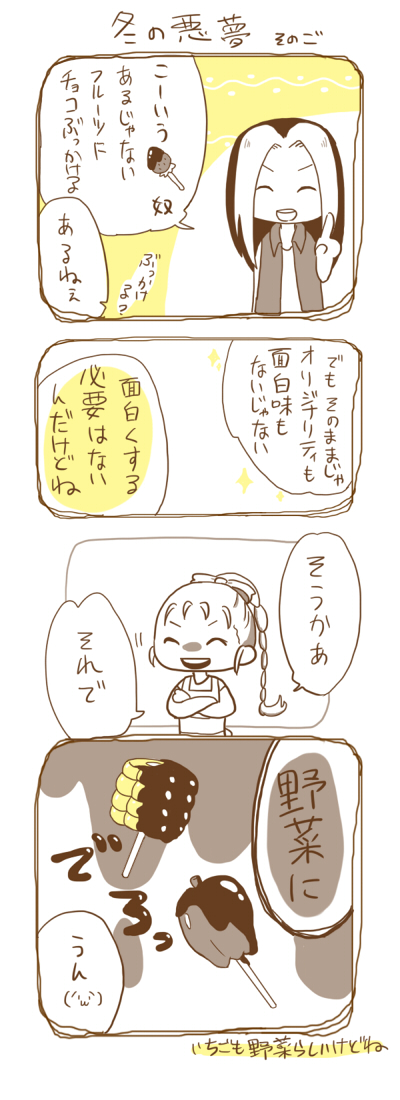 木になってる、りんごとかはフルーツで、イチゴやスイカのように、地面から…なんていうの、ああいうのは野菜なんだ、みたいな話を聞いた、気が。